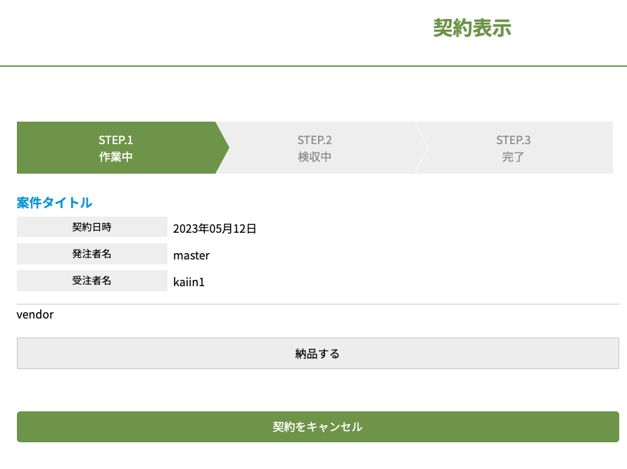 案件トップページで応募中の案件(発注された案件)の【提案を見る】ボタンをクリックします。